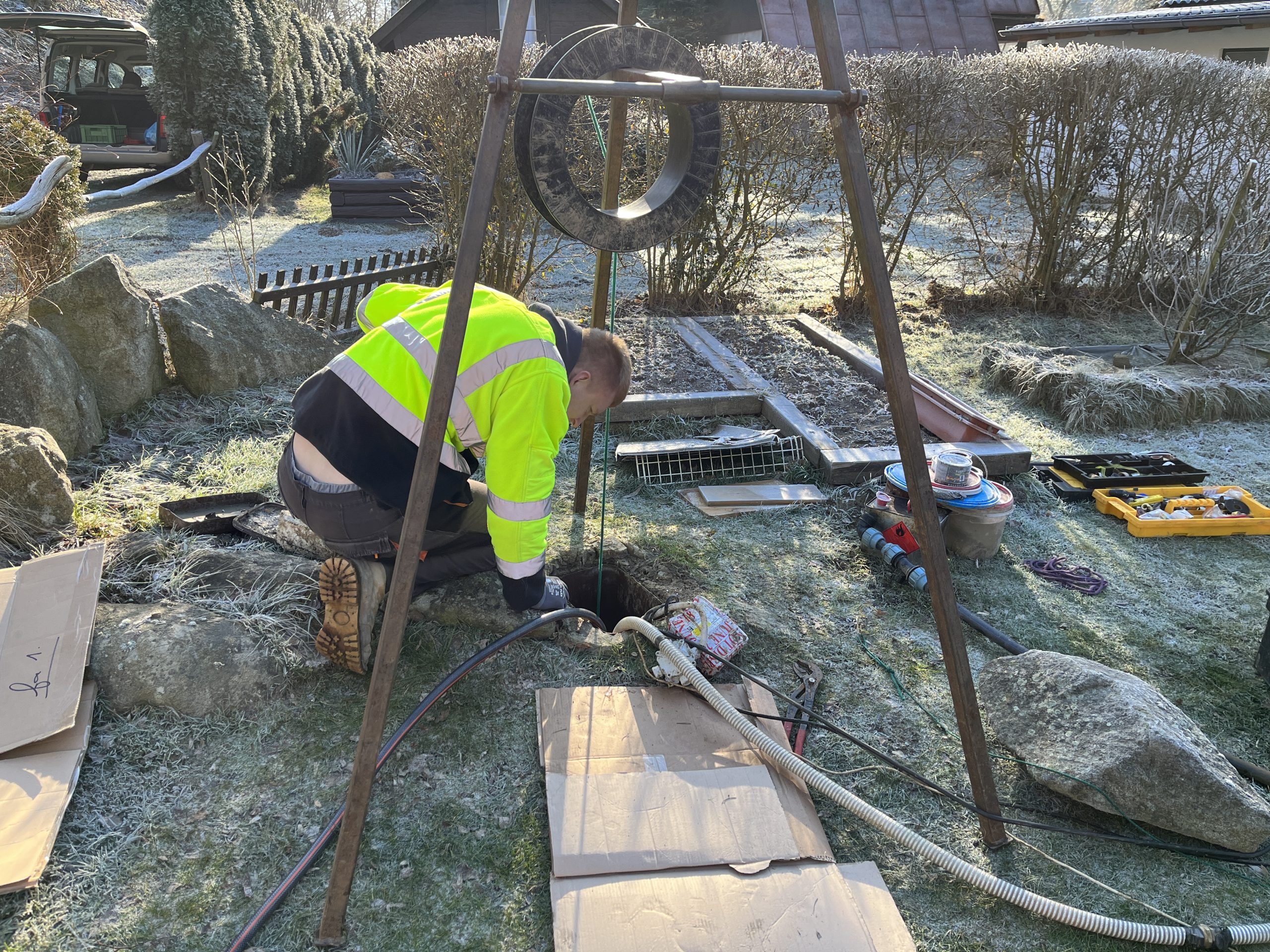 Čištění vrtané studny Kácov. Kácov mám osobně moc rád. Je to takové malebné městečko hned u Sázavy, ze kterého na mě číší pohoda a klid. A pohodář byl i majitel chaty přímo u řeky Sázavy, pan Záruba. Bohužel, Kácov tím, jak je u přímo u řeky, zmítají čas od času povodně. To bohužel postihlo i pana Zárubu, kdy měl chatku zatopenou včetně i vrtané studny. Samozřejmě voda z řeky, která se valí přes zahrady s sebou přináší bahno a další nečistoty, které samozřejmě natekly do vrtu. Po tom, co voda opadla přišlo na řadu vrt vyčistit. Provedeno, vyčištěno, chemicky ošetřeno a vrt se může vesele používat dál.
