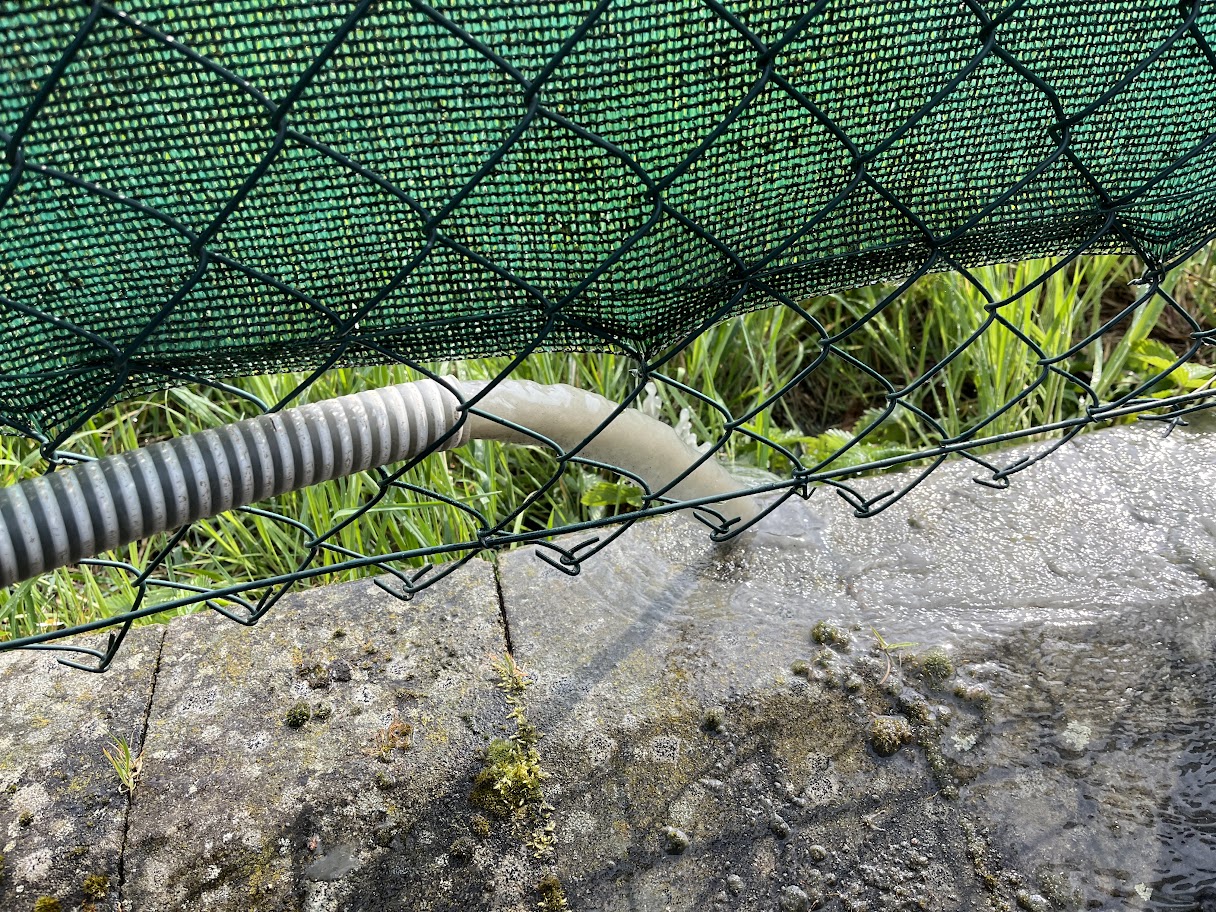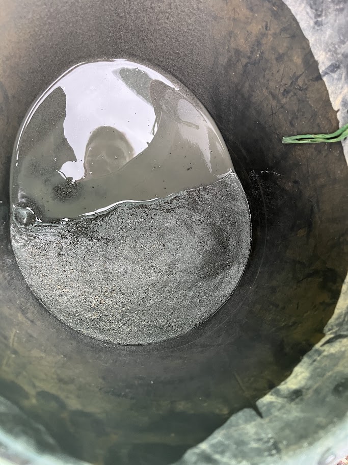 Čištění vrtané studny Petříkov. Majitel začal pociťovat malý nátok vody do vrt. Vrt byl plný písku a odštěpků skály z podloží, které pomalu a jistě začalo přicpávat perforaci a nátok do vrtu. Vyčištěno. Následně jsme čerpadlo mohli pustit cca o 4 metry níž, tedy nastavit trubku a celé zpět dopojit.